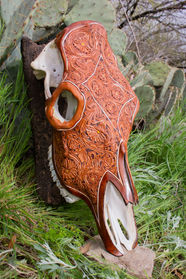 If you're a lover of unique, fine art, a leather carved bull skull could be your answer. Each skull is different and no two will ever look the same. They are a great conversational piece in an elegantly decorated Western home.